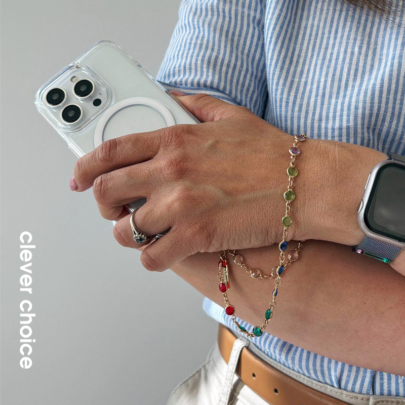 The elegant Rainbow Gems pendant is an excellent choice for a variety of occasions. The combination of gold with multicolored stones adds character and energy, making it the perfect complement to any styling. Phone Charm is a fashionable accessory not only for your phone, but also for shoulder bags, wallets and keys. By carrying the phone in a case with a lanyard, we additionally protect it from being knocked out of hand or stolen.