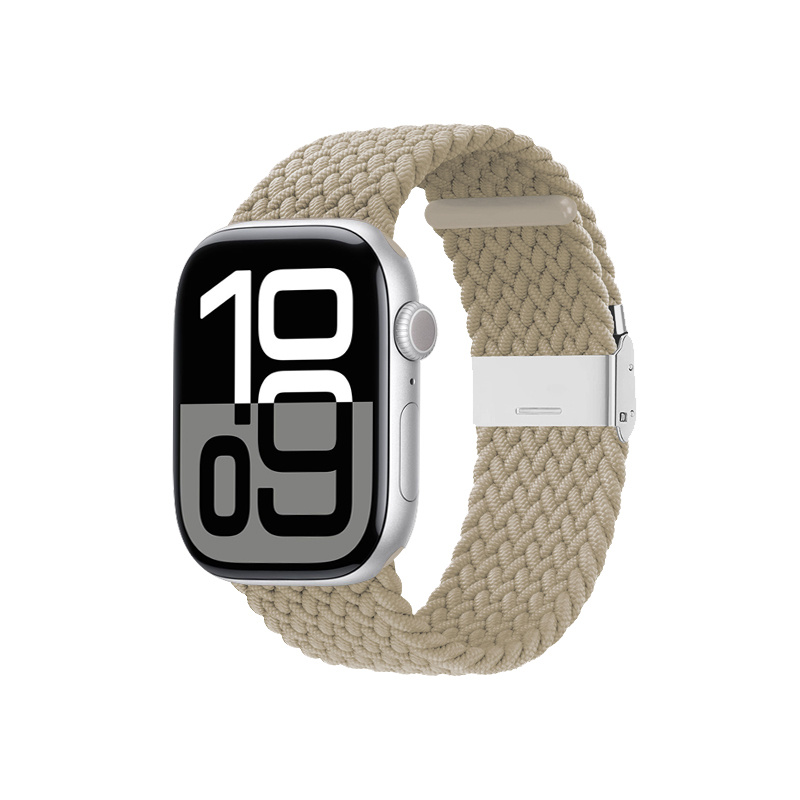 The Wave Band is a braided strap with stainless steel buckle for the Apple Watch. The flexible and breathable fibres guarantee a high level of wearing comfort, while offering a unique design and a modern twist. The metal buckle allows you to adjust the length of the strap to fit any hand. The strap can then be taken on and off without unfastening the buckle, allowing you to quickly connect it to the charger. Product features: - Flexible braided polyester fibre material - Durable stainless steel buckle - Adjustable length (fits all hands) - Insertion and removal without unfastening the buckle - Breathable material wicks away excess moisture - Elegant and modern design - Compatibility: Apple Watch Series 1/2/3/4/5/6/7/8/9/10/11/SE/SE 2/SE 3 (38/40/41/42 mm)