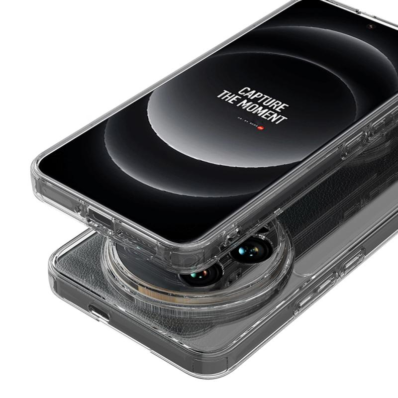 • Transparente Schutzhülle von Crong für das Xiaomi 14 Ultra, die das Gehäuse von allen Seiten sichtbar macht und schützt. Eine kristallklare Rückseite aus hartem Acryl kombiniert mit flexiblen Seiten, die die Kraft des Aufpralls dank einer speziellen