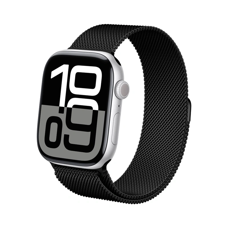 • Elegantes Edelstahlarmband in Schwarz für Apple Watch mit 42/44/45/49 mm Hüllengröße. Ein modernes Design mit Magnetverschluss macht das Metallband aus der Milano Steel Kollektion einfach anzulegen und zu verstellen.