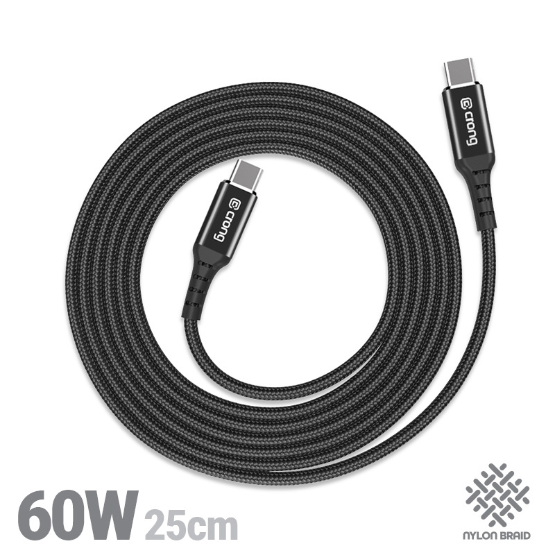 Crong Armor Link - Cable USB-C a USB-C de 60 W, 3 A, 25 cm (negro)