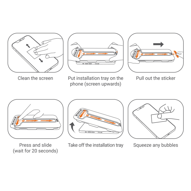 Innowacyjna metoda montażu zastosowana w szkłach EasyShield™ pozwala nakleić szkło w błyskawiczny sposób. Dedykowane narzędzie Press & Slide™ dopasowuje szkło idealnie do ekranu w iPhonie, a naklejka Dust-Free sprawia, że pod naklejonym szkle nie zostaje żaden kurz.