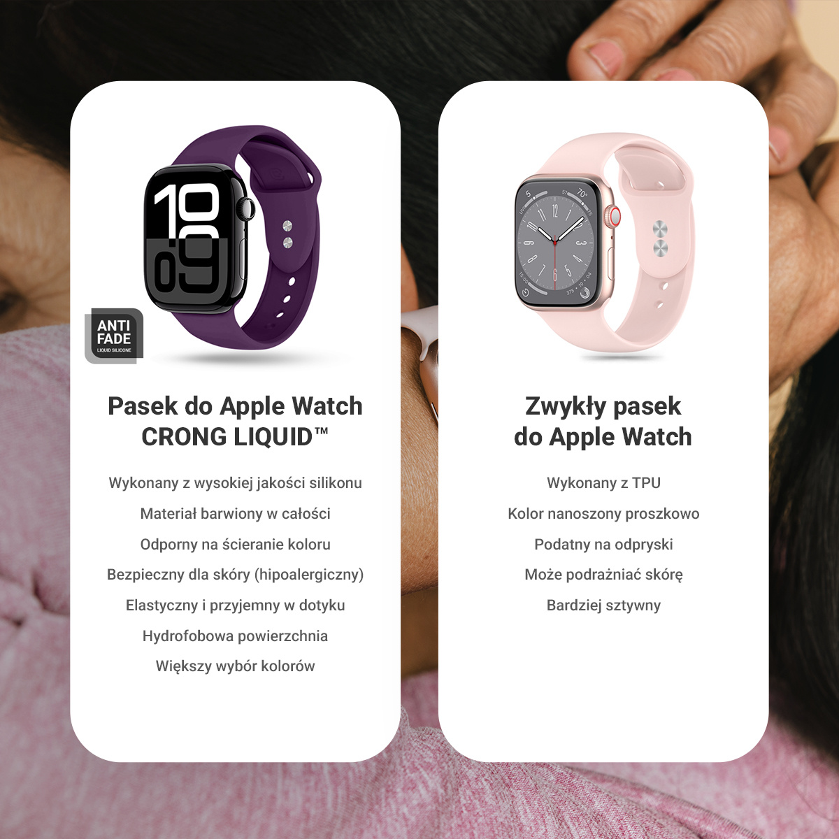 • Lekki i przyjemny w dotyku pasek sportowy do Apple Watch z kopertą w rozmiarze 38/40/41mm wykonany z płynnego silikonu (Liquid Silicone). Dostępny w kilkunastu wersjach kolorystycznych to doskonały wybór do noszenia na co dzień.