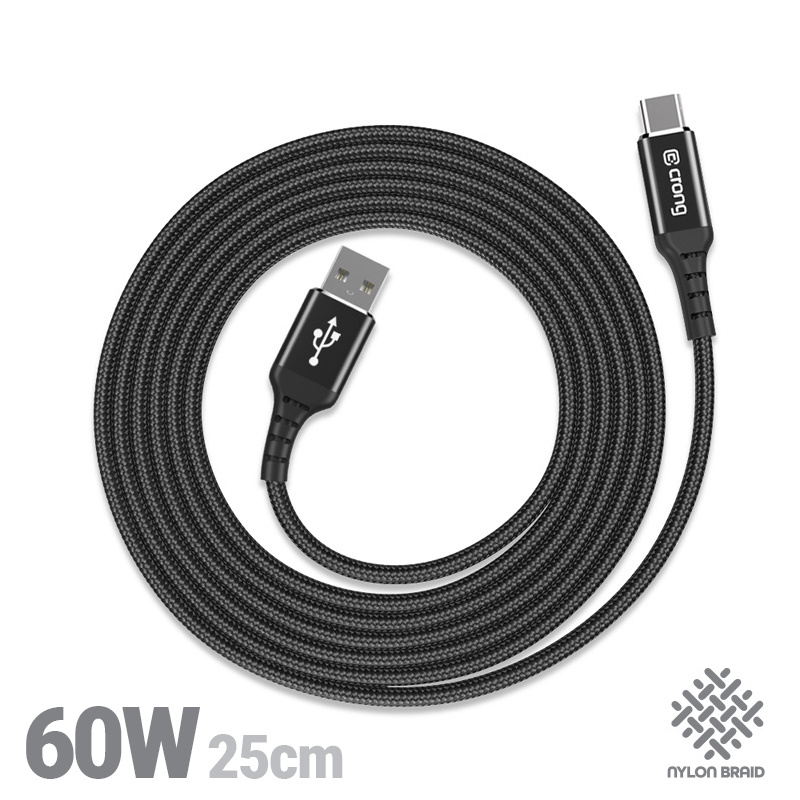 Crong Armor Link - 60W PD 3A USB-A to USB-C Cable 25cm (Black)