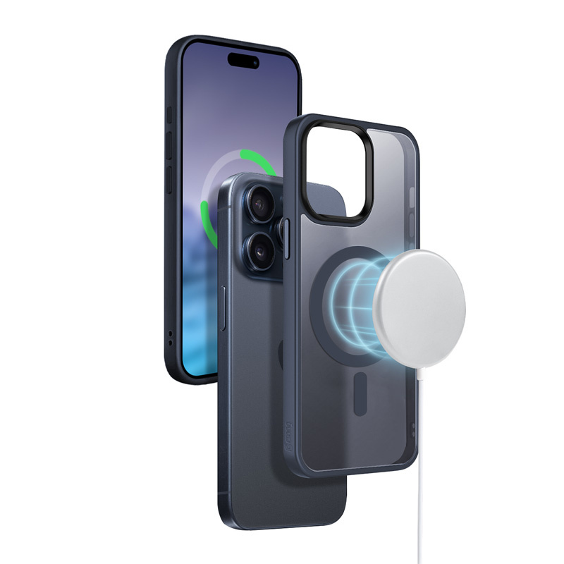 Crong Hybrid Frost MAG Cover - Custodia MagSafe per iPhone 15 Pro Max (blu navy)
