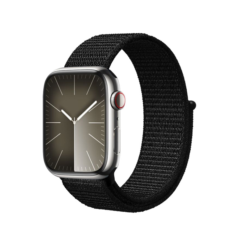 Cinturino sportivo leggero e traspirante per Apple Watch con cassa da 44, 45, 46 o 49 mm, realizzato in filo riflettente e resistenti fibre di nylon. Una speciale trama in nylon crea una morbida fodera interna che non irrita la pelle e allontana l'umidità. Il cinturino è dotato di una chiusura a strappo eccezionalmente resistente.