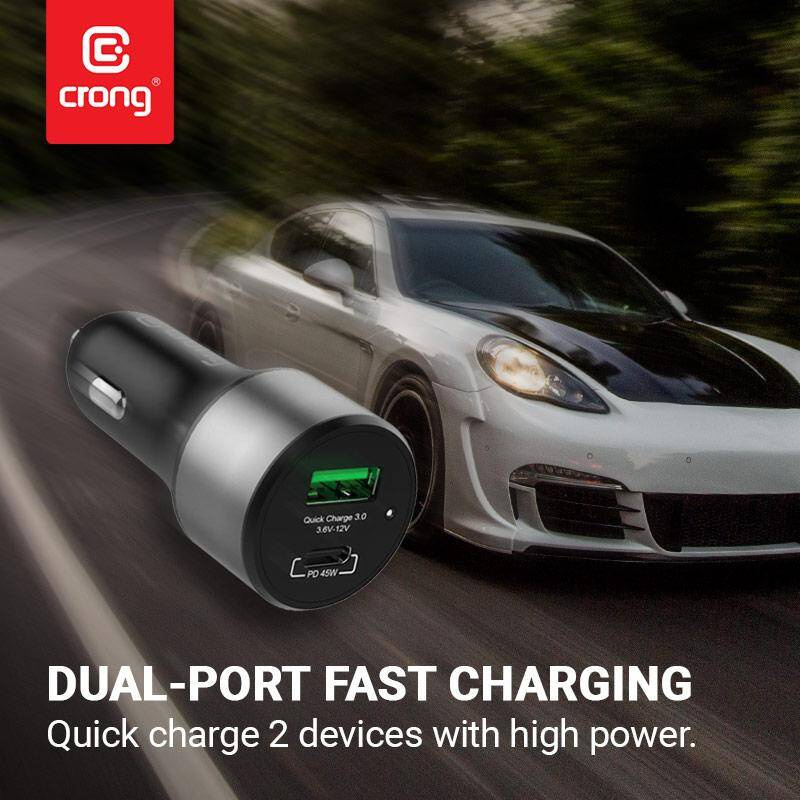 Crong Power Car Charger 63W - USB-C PD 45W car charger + USB QC 3.0 18W (black)