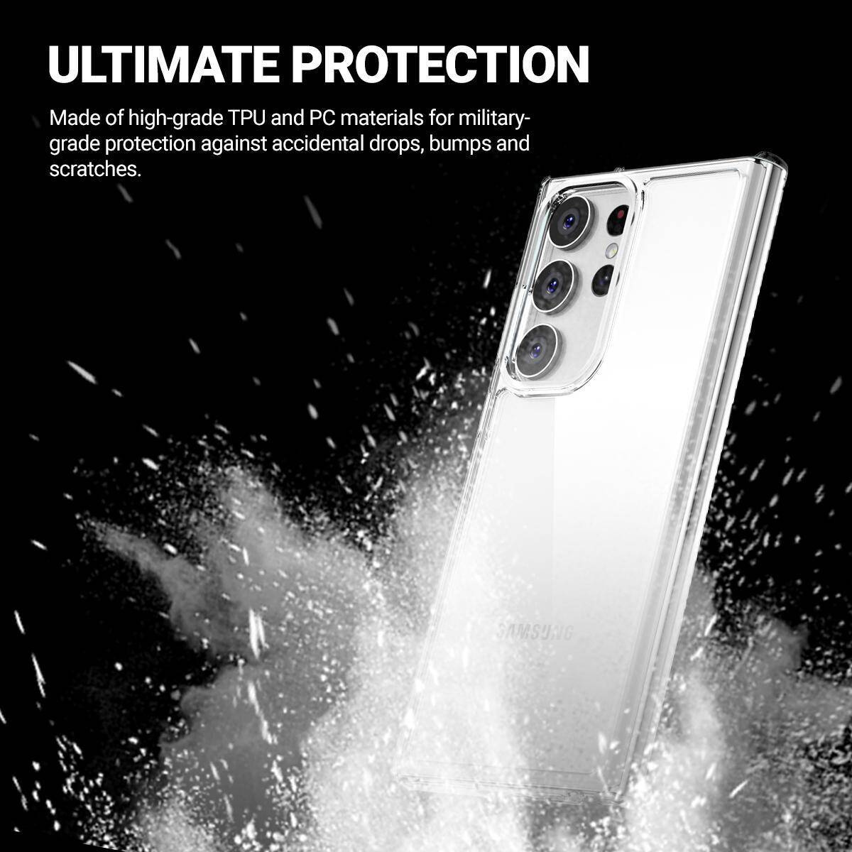 - Przezroczyste etui ochronne marki Crong do Samsunga Galaxy S23 Ultra, które eksponuje i zabezpiecza jego obudowę ze wszystkich stron. Krystalicznie czysty tył wykonany z twardego akrylu, łączy się z elastycznymi bokami, amortyzując siłę uderzenia.