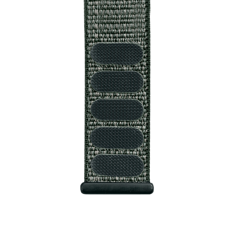 Breathable nylon fiber sports band for Apple Watch with 44/45/46/49 mm envelope size. The special weave of nylon creates a soft padding on the inside that does not irritate the skin and wicks away moisture. The Nylon Band is equipped with an extra-strong Velcro closure, so it stays securely on your hand at all times.